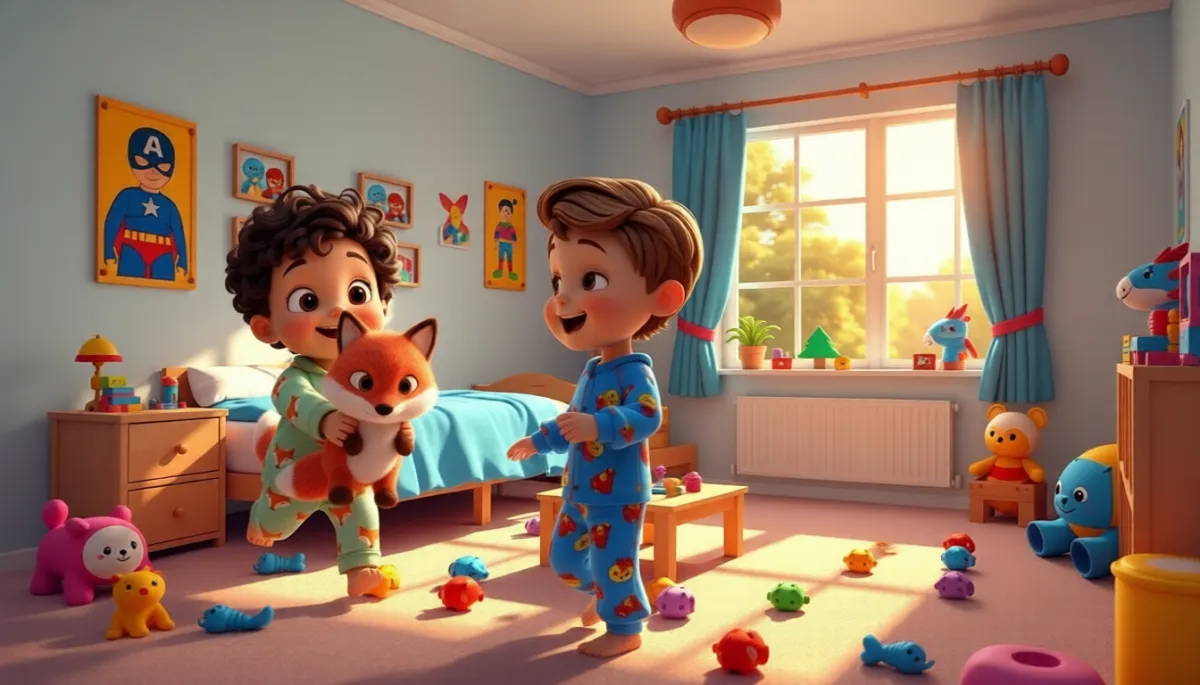 This is Mark and his brother Angelo playing. Mark loves his toy fox.